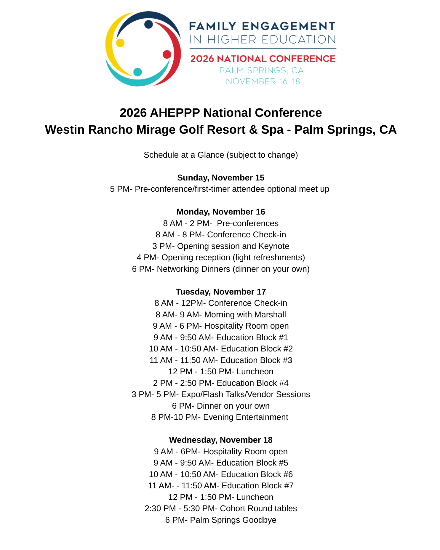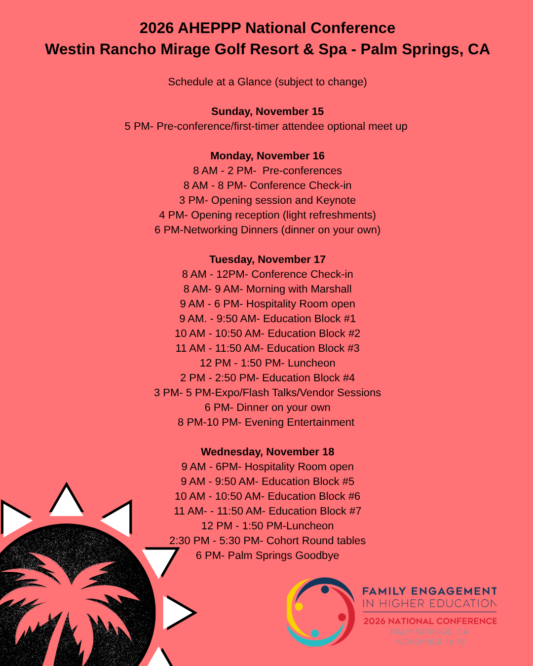 For any questions or concerns, please contact: AHEPPP Conference Team at [email protected].